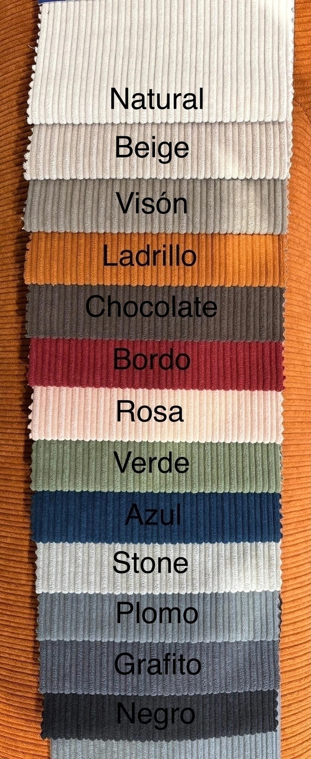 Estructura en multilaminado y tapizado en tela pana waterproof o lino antidesgarro, brindando al producto mayor suavidad y comodidad para el usuario.
